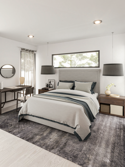 Predomina una doble altura que conecta los dos dormitorios entre ellos mismos con la sala, comedor y vestíbulo de planta alta. Cada uno de los dormitorios tiene su propio baño y el dormitorio principal cuenta con un vestidor y un pequeño balcón que permite interactuar con el espacio público.